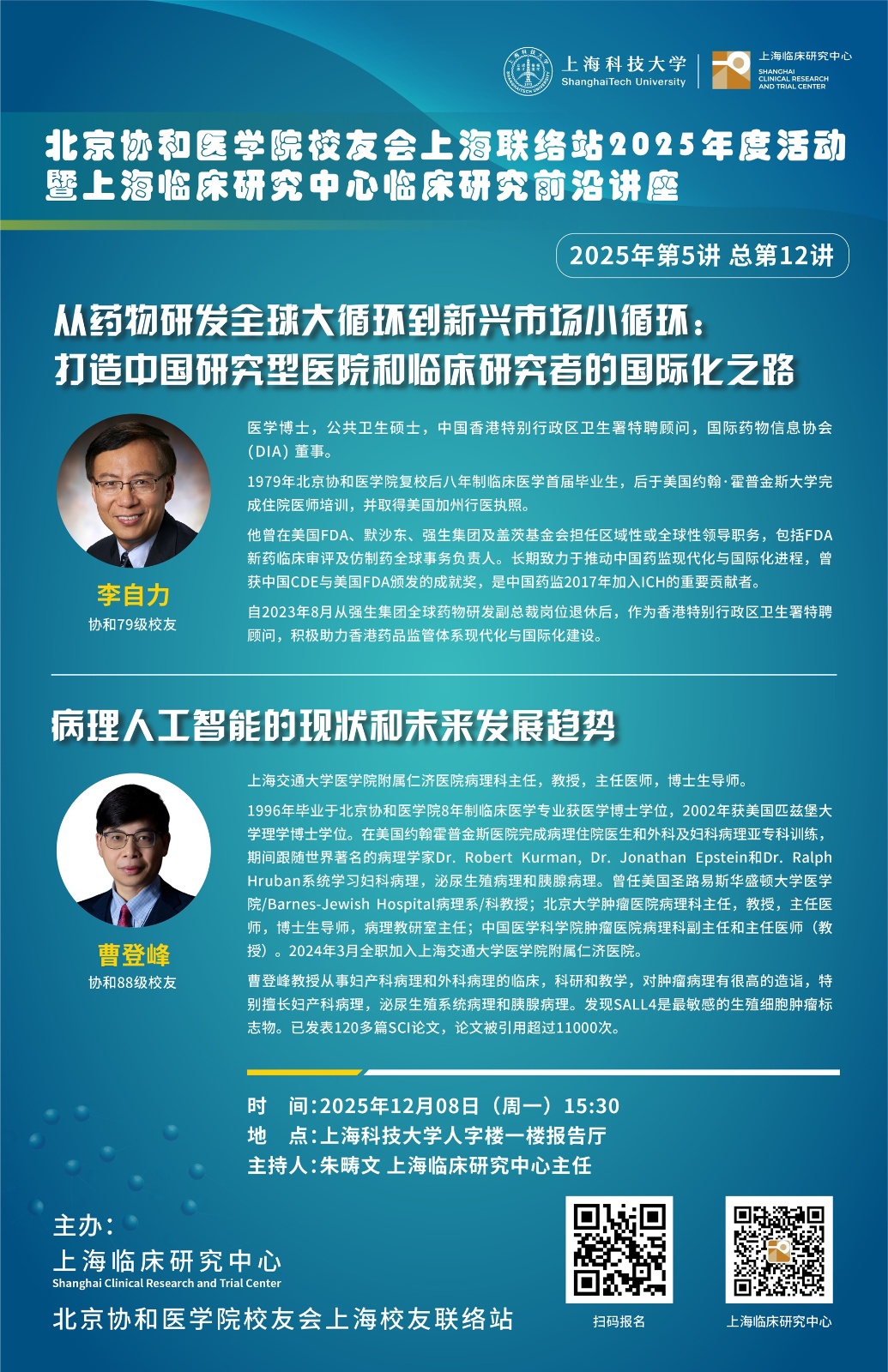 北京协和医学院校友会上海校友联络站2025年度活动 暨 上海临床研究中心临床研究前沿讲座