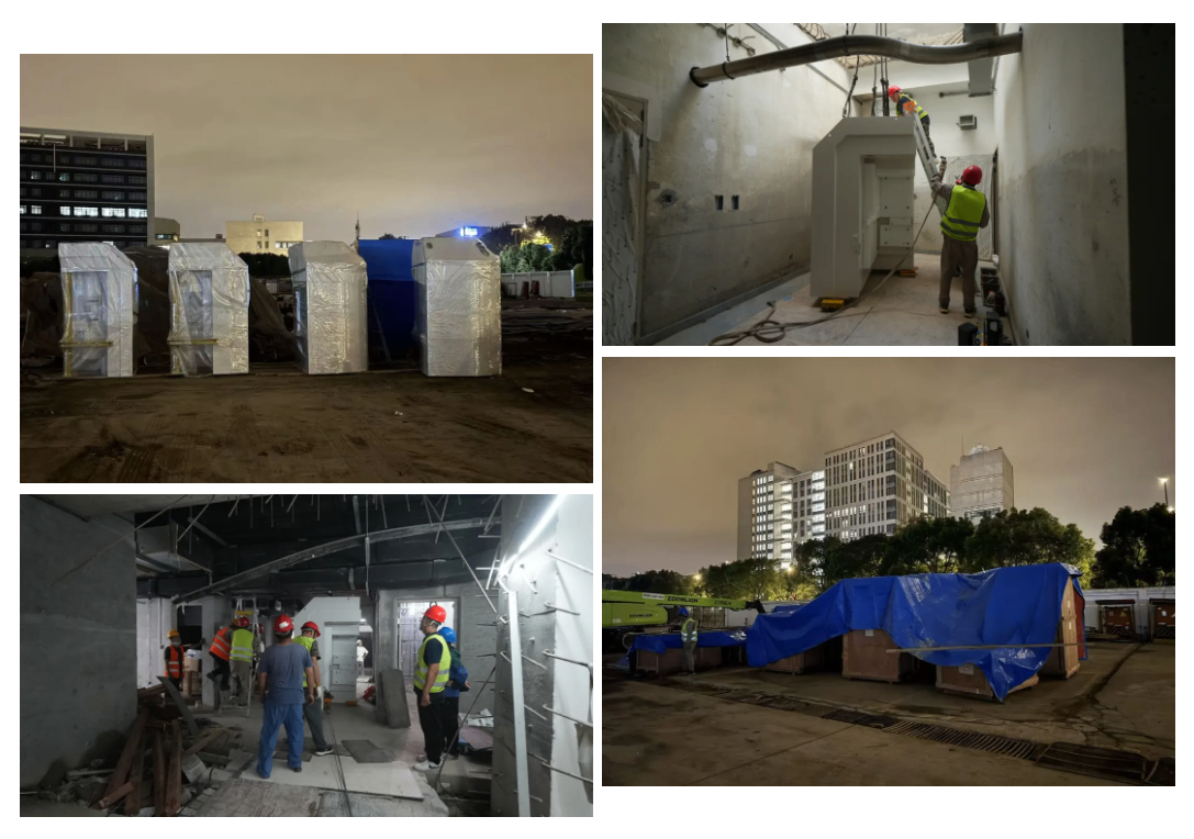 回旋加速器体积庞大,单个部件可重达15吨,总重量可达100吨,并且对于吊装精度要求极高。中心多部门联合制定精密方案,高效安全将其成功送达核素制备区。