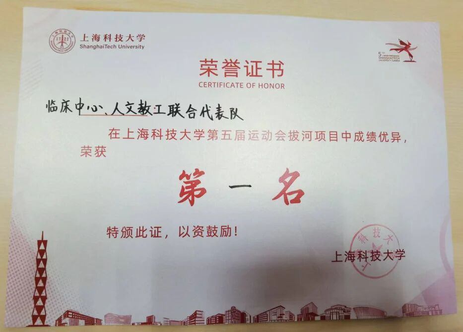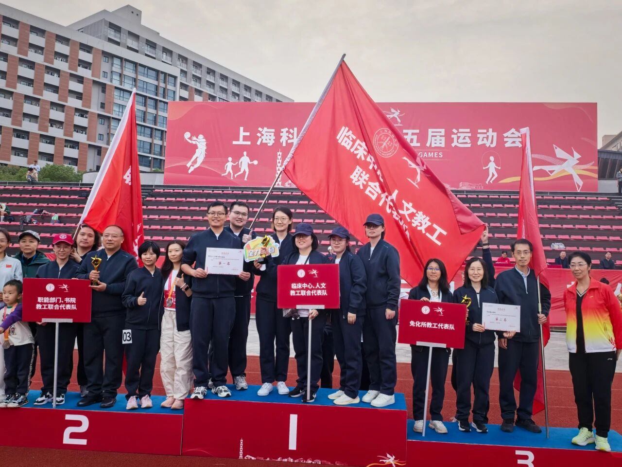丹桂飘香,金风送爽。11月1日,上海科技大学第五届运动会成功举行,上海临床研究中心与上科大人文科学研究院组成教工联合代表队勇创佳绩,以骄人战绩跻身团体总分第三名。上海临床研究中心的体育健儿们在多个比赛中摘金夺银,充分展现了中心教职员工团结拼搏、锐意进取的非凡风采。