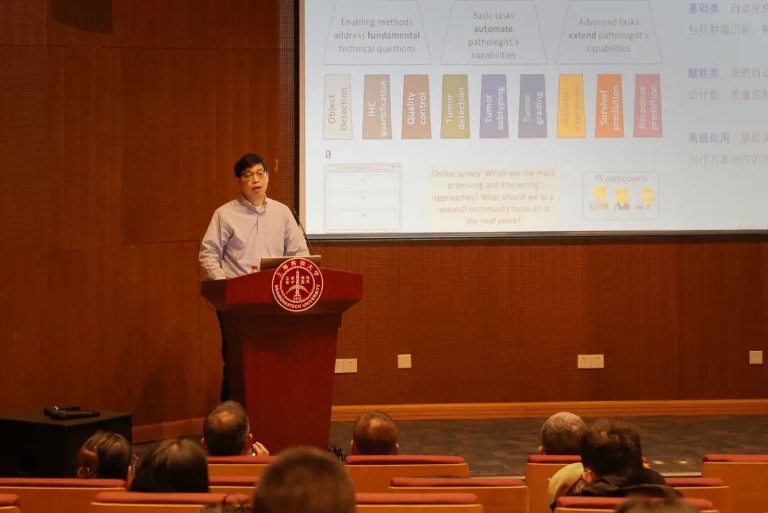 曹登峰聚焦“病理人工智能的现状和未来发展趋势”,直击中国病理诊断领域的核心痛点。数据显示,我国病理医师缺口达7-14万,且传统2D病理诊断存在取样局限与主观性偏差,癌症生存率与发达国家存在差距。对此,他详解了深度学习如何赋能病理诊断,通过PaigeAI、Galen AI等国际案例与国产系统的实践数据,展示了AI在肿瘤识别、分级及治疗反应预测中的精准表现——前列腺癌诊断敏感度可从74%提升至90%,3D病理结合AI更能减少15%的癌前病变漏诊。他认为,AI将成为病理医师的“得力助手”,在初筛、查漏补缺等场景中发挥关键作用,但不会替代医师,未来对病理人才的跨学科能力要求将更高。