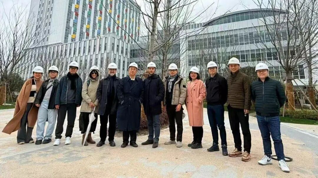 座谈前,来访团成员在朱畴文及团队的带领下参观上海临床研究中心建设项目工地现场,实地体验中心建筑和医疗设计理念。